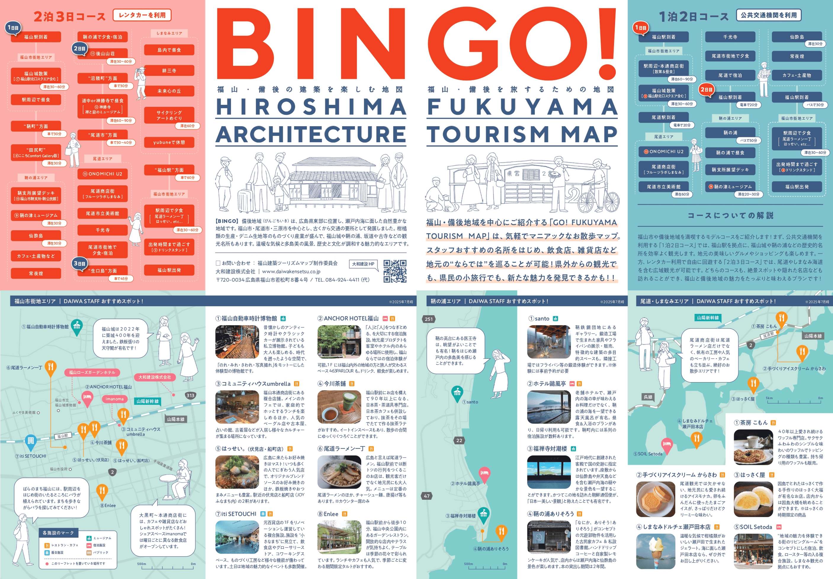 建物の工事担当者が語る見どころポイントや、制作スタッフおすすめスポット・備後地域を満喫できるモデルコースも掲載した”気軽でマニアックなお散歩マップ”です!